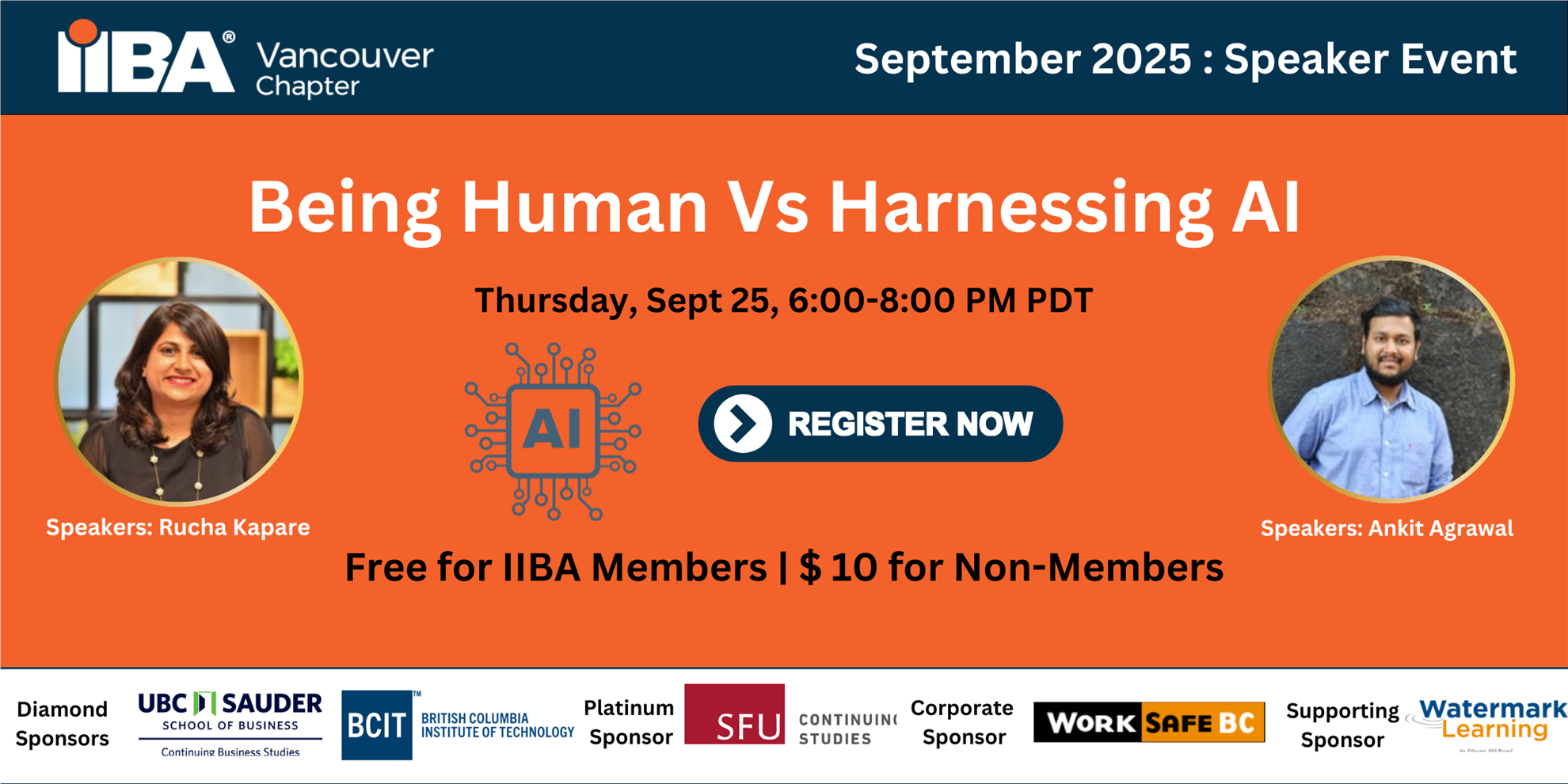 Join us and the IIBA Vancouver Chapter for an electrifying session that will transform how you think about your role in the AI-driven future.